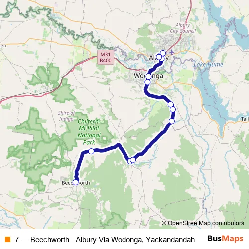 Bus 7 - Beechworth - Albury Via Wodonga, Yackandandah in Wodonga: Stops & Timetable