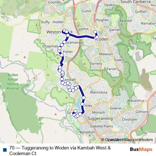 Click here to view the nearest 70 - Tuggeranong to Woden via Kambah West & Cooleman Ct bus stop.
