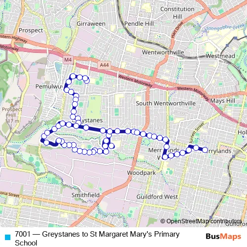Click here to view the nearest 7001 - Greystanes to St Margaret Mary's Primary School bus stop.