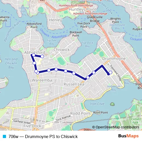 Click here to view the nearest 706w - Drummoyne PS to Chiswick bus stop.