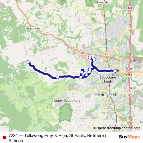 Bus 7234 - Tullawong Pmy & High, St Pauls, Bellmere (School) in Wamuran: Stops & Timetable