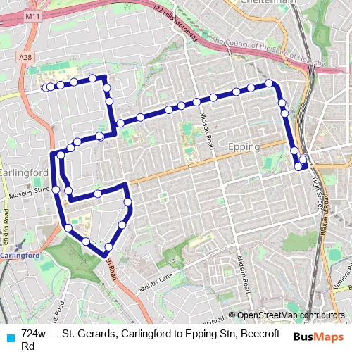 Click here to view the nearest 724w - St. Gerards, Carlingford to Epping Stn, Beecroft Rd bus stop.