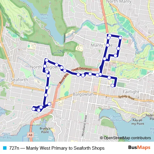 Bus 727n - Manly West Primary to Seaforth Shops Schedule in Sydney