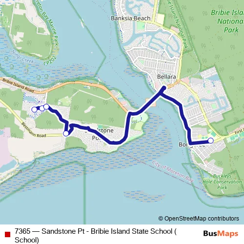 Click here to view the nearest 7365 - Sandstone Pt - Bribie Island State School (School) bus stop.