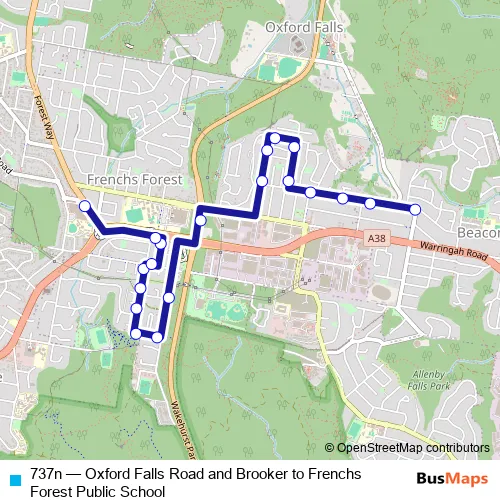 Bus 737n - Oxford Falls Road and Brooker to Frenchs Forest Public School Schedule in Sydney