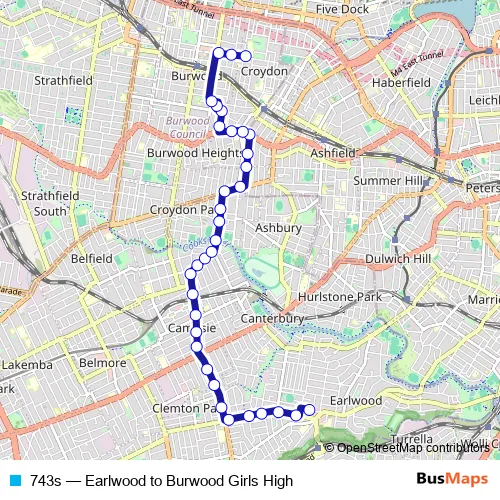 Bus 743s - Earlwood to Burwood Girls High in Sydney: Stops & Timetable