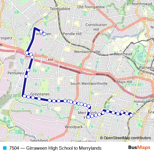 Bus 7504 - Girraween High School to Merrylands: Full Schedule in Parramatta