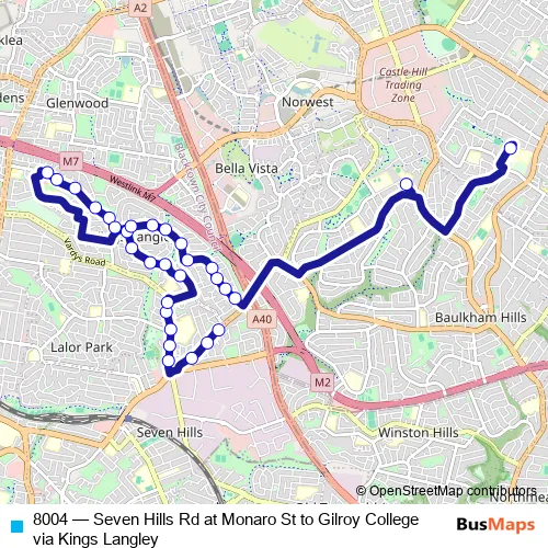 Bus 8004 - Seven Hills Rd at Monaro St to Gilroy College via Kings Langley: Full Schedule in Parramatta
