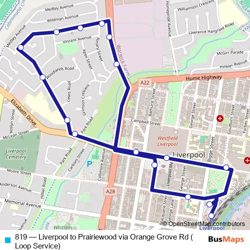 Click here to view the nearest 819 - Liverpool to Prairiewood via Orange Grove Rd (Loop Service) bus stop.