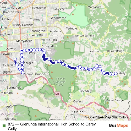 Bus 872 - Glenunga International High School to Carey Gully: Full Schedule in Adelaide