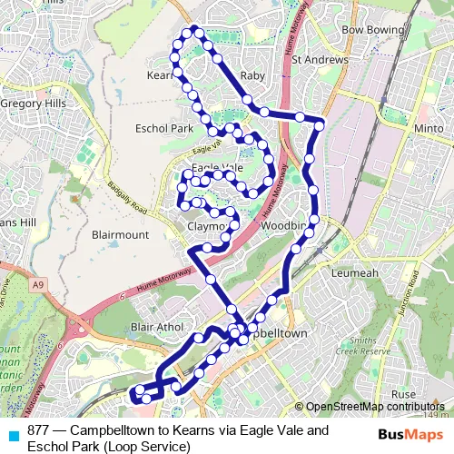Click here to view the nearest 877 - Campbelltown to Kearns via Eagle Vale and Eschol Park (Loop Service) bus stop.