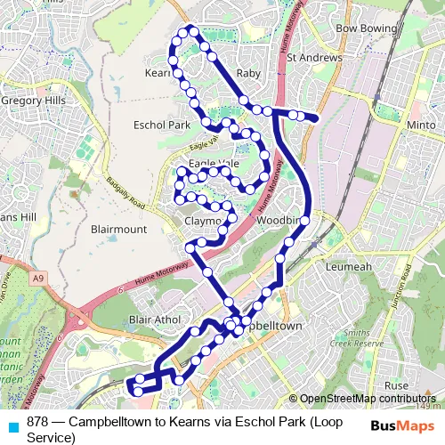 Click here to view the nearest 878 - Campbelltown to Kearns via Eschol Park (Loop Service) bus stop.