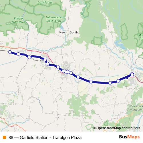 Bus 88 - Garfield Station - Traralgon Plaza: Full Schedule in Warragul