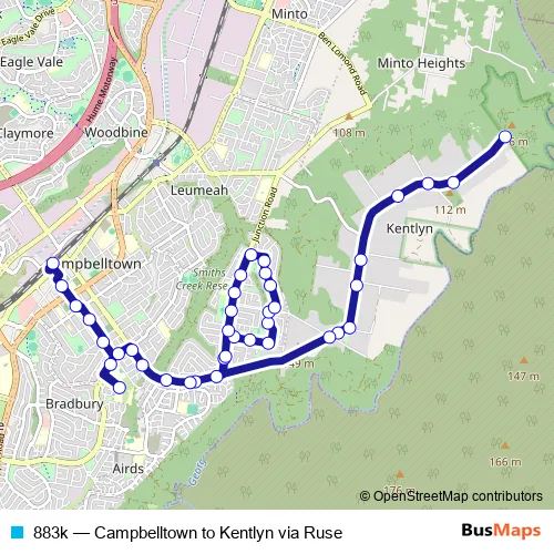 Click here to view the nearest 883k - Campbelltown to Kentlyn via Ruse bus stop.