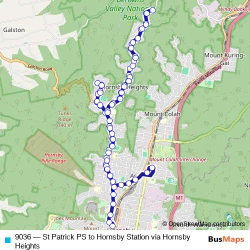 Click here to view the nearest 9036 - St Patrick PS to Hornsby Station via Hornsby Heights bus stop.