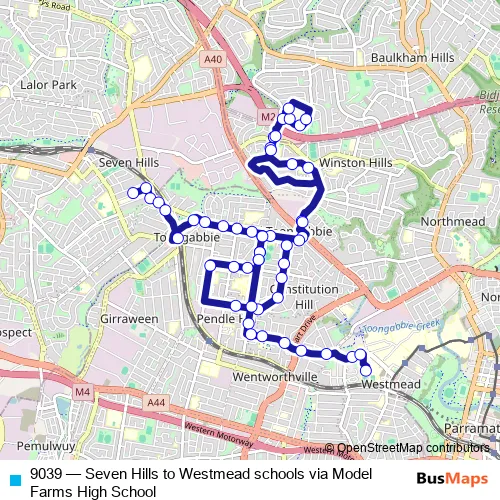 Bus 9039 - Seven Hills to Westmead schools via Model Farms High School Schedule in Parramatta