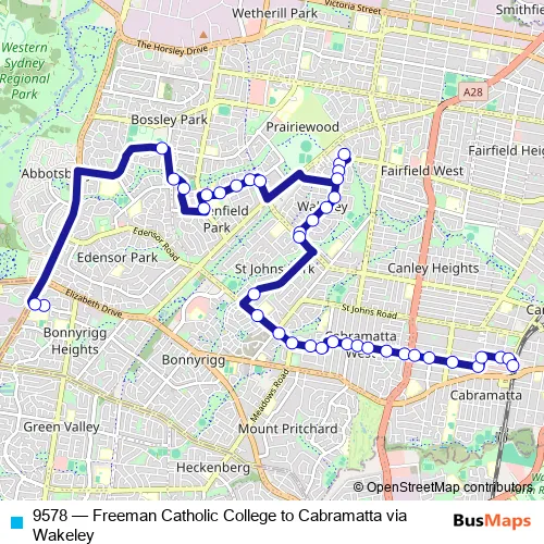 Bus 9578 - Freeman Catholic College to Cabramatta via Wakeley: Full Schedule in Liverpool