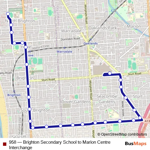 Click here to view the nearest 958 - Brighton Secondary School to Marion Centre Interchange bus stop.