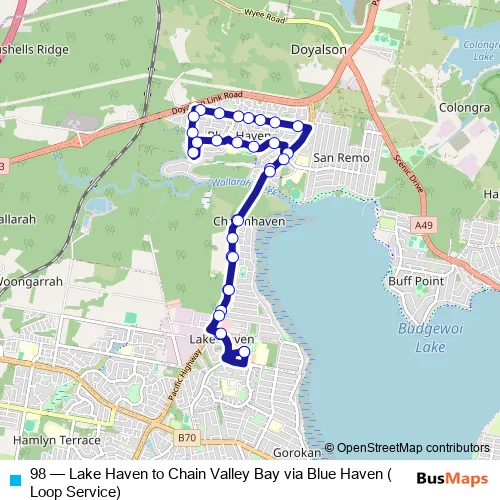 Click here to view the nearest 98 - Lake Haven to Chain Valley Bay via Blue Haven (Loop Service) bus stop.