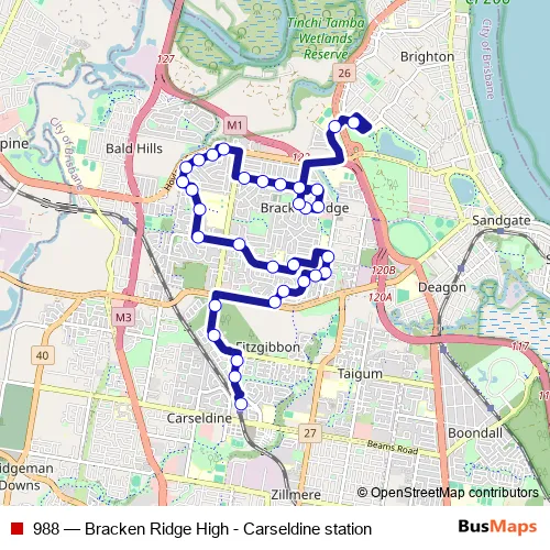 Bus 988 - Bracken Ridge High - Carseldine station in Brisbane: Stops & Timetable
