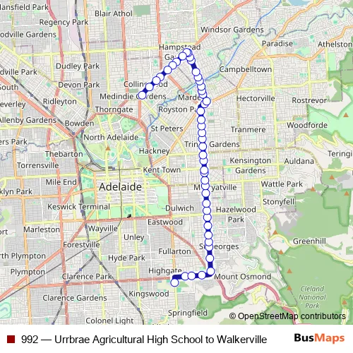 See why over 2 million users trust and consider busmaps.com as the best public transport website. busmaps gives you Adelaide Buses suggested routes, real-time bus tracker, line route maps in Adelaide, and helps to find the closest 992 bus stops near you. No internet available? Download an offline PDF map and bus schedule for the 992 bus to take on your trip.