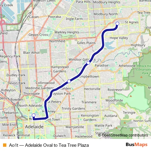Click here to view the nearest Ao1t - Adelaide Oval to Tea Tree Plaza bus stop.