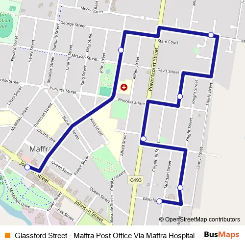 Glassford Street - Maffra Post Office Via Maffra Hospital bus Route Map