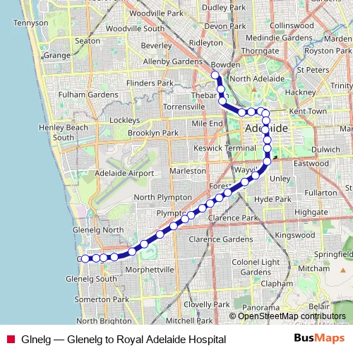 See why over 2 million users trust and consider busmaps.com as the best public transport website. busmaps gives you Adelaide Trams suggested routes, real-time bus tracker, line route maps in Adelaide, and helps to find the closest Glnelg tram stops near you. No internet available? Download an offline PDF map and bus schedule for the Glnelg tram to take on your trip.