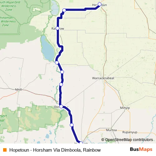 Click here to view the nearest Hopetoun - Horsham Via Dimboola, Rainbow bus stop.
