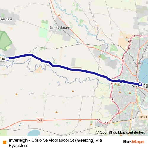 Additional information: Inverleigh - Corio St/Moorabool St (Geelong) Via Fyansford has 2 stops and the total trip duration