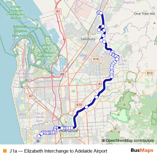 See why over 2 million users trust and consider busmaps.com as the best public transport website. busmaps gives you Adelaide Buses suggested routes, real-time bus tracker, line route maps in Adelaide, and helps to find the closest J1a bus stops near you. No internet available? Download an offline PDF map and bus schedule for the J1a bus to take on your trip.
