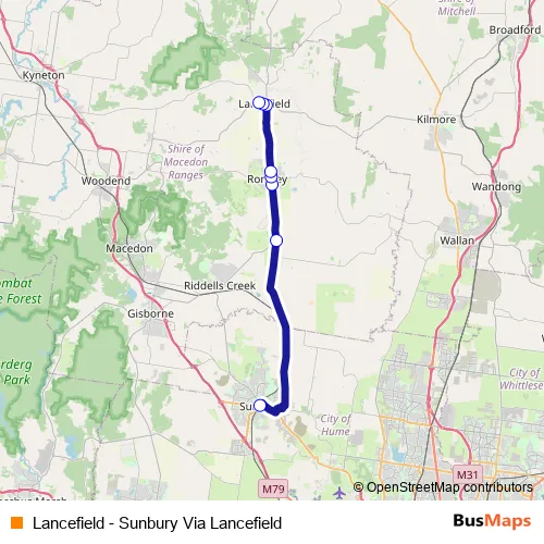 Additional information: Lancefield - Sunbury Via Lancefield has 8 stops and the total trip duration