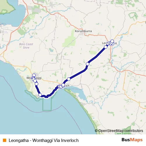 Leongatha - Wonthaggi Via Inverloch bus Route Map