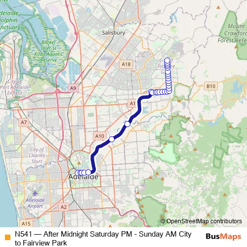 See why over 2 million users trust and consider busmaps.com as the best public transport website. busmaps gives you Adelaide Buses suggested routes, real-time bus tracker, line route maps in Adelaide, and helps to find the closest N541 bus stops near you. No internet available? Download an offline PDF map and bus schedule for the N541 bus to take on your trip.