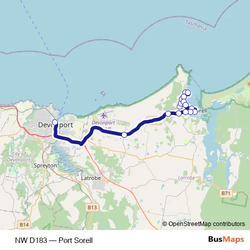 See why over 2 million users trust and consider busmaps.com as the best public transport website. busmaps gives you Port Sorell Buses suggested routes, real-time bus tracker, line route maps in Port Sorell, and helps to find the closest NW D183 bus stops near you. No internet available? Download an offline PDF map and bus schedule for the NW D183 bus to take on your trip.