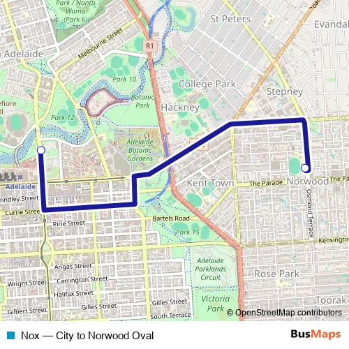 Click here to view the nearest Nox - City to Norwood Oval bus stop.