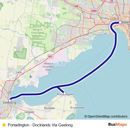 Additional information: Portarlington - Docklands Via Geelong has 3 stops and the total trip duration