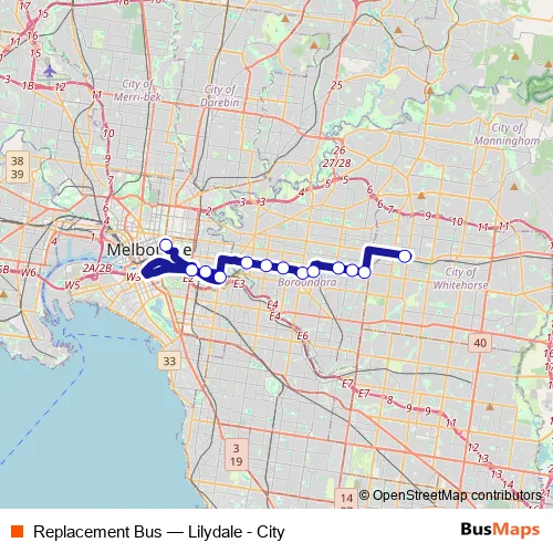 Click here to view the nearest Replacement Bus - Lilydale - City metro stop.