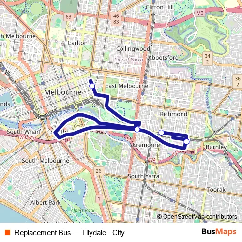 Click here to view the nearest Replacement Bus - Lilydale - City metro stop.