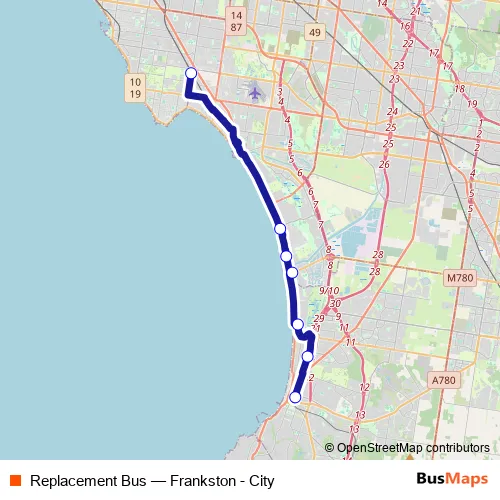 See why over 2 million users trust and consider busmaps.com as the best public transport website. busmaps gives you Frankston East Metro Lines suggested routes, real-time bus tracker, line route maps in Frankston East, and helps to find the closest Replacement Bus metro stops near you. No internet available? Download an offline PDF map and bus schedule for the Replacement Bus metro to take on your trip.