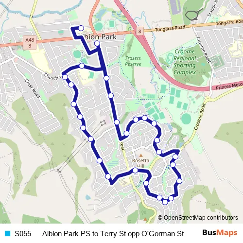Click here to view the nearest S055 - Albion Park PS to Terry St opp O'Gorman St bus stop.