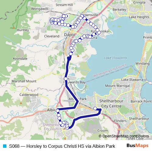 Click here to view the nearest S068 - Horsley to Corpus Christi HS via Albion Park bus stop.