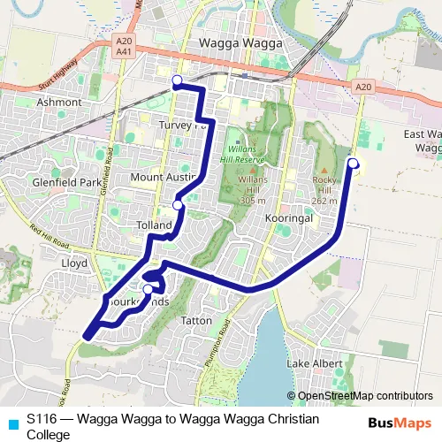Bus S116 - Wagga Wagga to Wagga Wagga Christian College Schedule in Wagga Wagga City Council