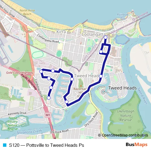 Click here to view the nearest S120 - Pottsville to Tweed Heads Ps bus stop.