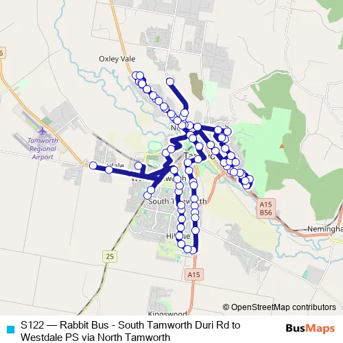Click here to view the nearest S122 - Rabbit Bus - South Tamworth Duri Rd to Westdale PS via North Tamworth bus stop.