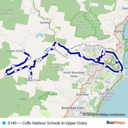 Click here to view the nearest S140 - Coffs Harbour Schools to Upper Orara bus stop.