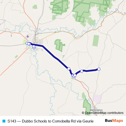Click here to view the nearest S143 - Dubbo Schools to Comobella Rd via Geurie bus stop.