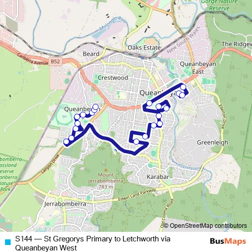 Click here to view the nearest S144 - St Gregorys Primary to Letchworth via Queanbeyan West bus stop.
