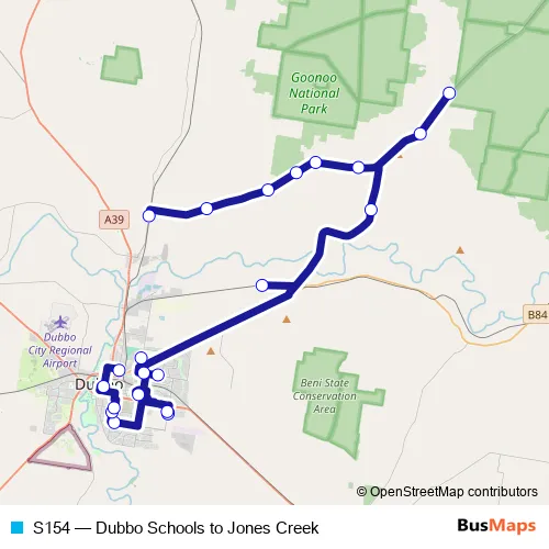 Click here to view the nearest S154 - Dubbo Schools to Jones Creek bus stop.