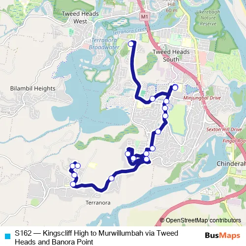 Bus S162 - Kingscliff High to Murwillumbah via Tweed Heads and Banora Point: Full Schedule in Terranora